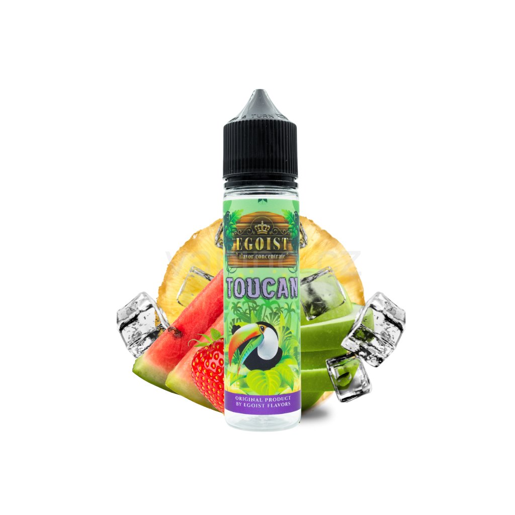 TUCAN - Tento výjimečný mix vybraných ovocných plodů je dokonale vyváženou lahůdkou z čerstvých zelených jablek, osvěžujícího melounu, sladkých jahod a šťavnatého ananasu. Tato harmonická kombinace ovoce je ideální volbou pro celodenní vapování.
