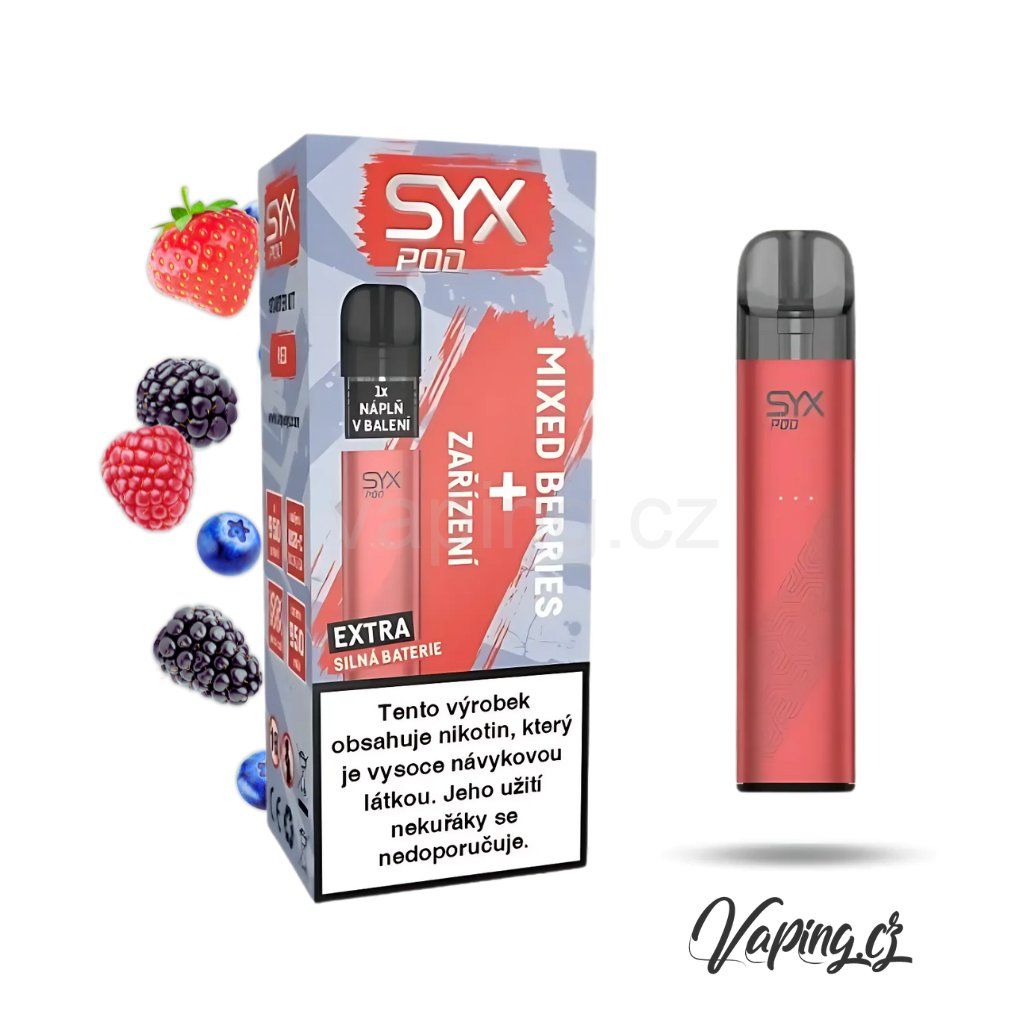 SYX POD KIT E-CIGARETA - ČERVENÁ + 1KS CARTRIDGE MIXED BERRIES (lesní plody)